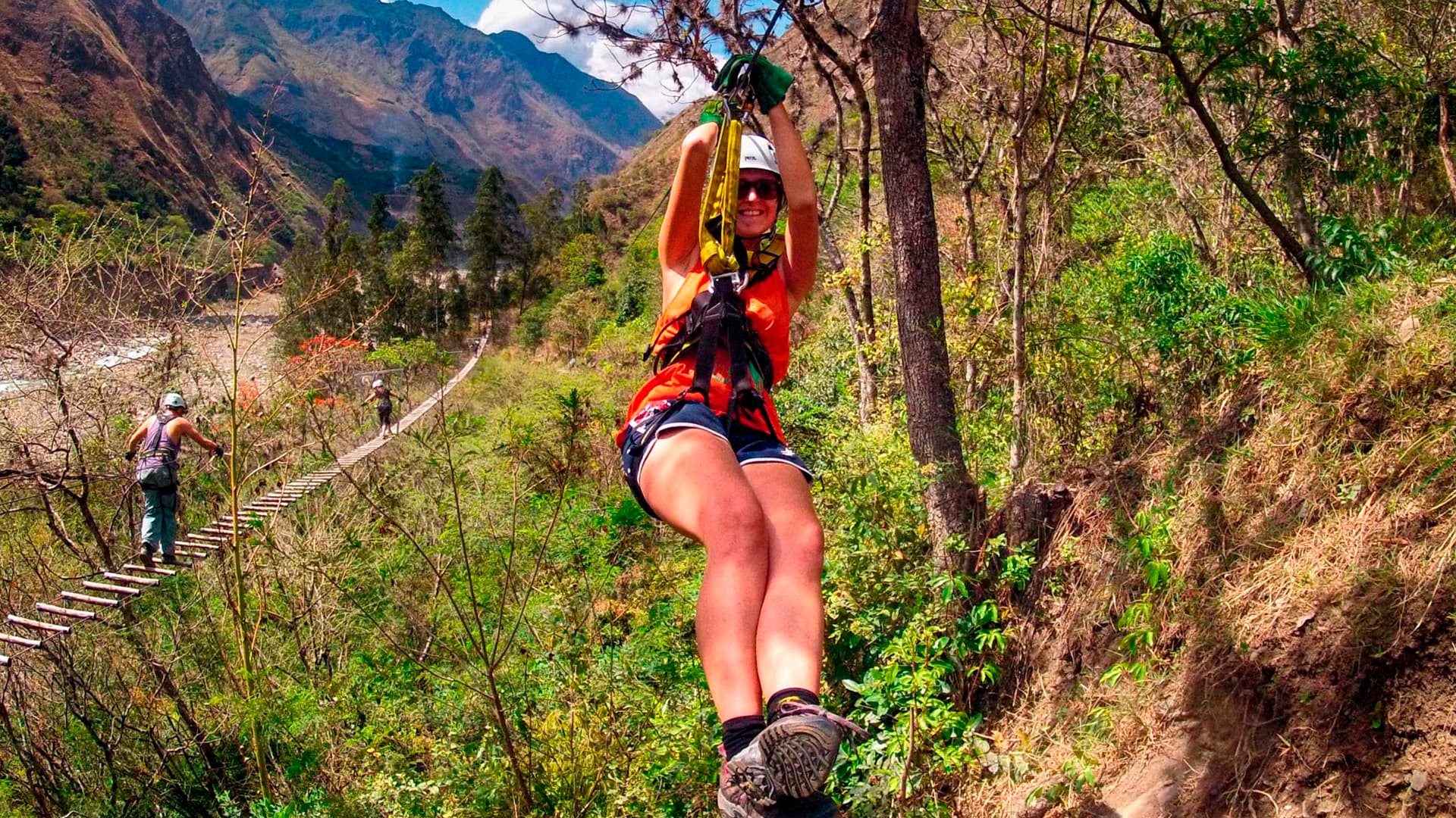 Por la mañana, tendrá la oportunidad de hacer tirolesa (con suplemento; la reserva deberá realizarse directamente en su agencia al reservar todo el recorrido). Esta es una experiencia única y aventurera, llena de adrenalina, pasando de un lado al otro del valle en un teleférico. Las actividades de tirolesa comienzan a las 7:00 a.m. y duran hasta las 10:00 a.m. A esta hora, habrá un autobús que nos llevará a la estación Hidroeléctrica (1,900 m s. n. m.), donde almorzaremos.